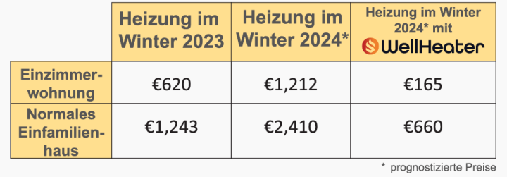 Seien wir ehrlich: Uns steht eine sehr harte Wintersaison bevor. Die Energie zum Heizen unserer Häuser ist teurer als je zuvor. Die deutschen Wetterdienste sagen außerdem einen SUPERKALTEN WINTER voraus – vielleicht einen der kältesten seit Jahrzehnten. Sind Sie darauf vorbereitet? Aufgrund der erhöhten Energiepreisobergrenzen werden unsere Energierechnungen bald um mehr als das Dreifache steigen! Ein durchschnittlicher Haushalt wird in diesem Winter voraussichtlich über 5.000€ ausgeben. Aber das ist noch nicht alles. Extreme Wetterverhältnisse werden immer häufiger. Die deutschen Wetterdienste sagen jetzt voraus, dass der Winter 2025 eine der kältesten Jahreszeiten der jüngeren Geschichte sein wird. Angesichts des kalten Wetters und der teuren Energie suchen Tausende von Menschen verzweifelt nach billigeren Alternativen zum Heizen ihrer Häuser. Glücklicherweise gibt es Möglichkeiten, mit denen Sie Tausende von Euro sparen und Ihr Zuhause angenehm warm halten können. Eine bestimmte Heizung hat für Schlagzeilen gesorgt. Mit einer Energieeffizienz von 99,8% ist er die perfekte Lösung, um Strom zu sparen und Ihre Häuser zu heizen. Außerdem kostet er ein Vielfaches weniger als vergleichbare High-Tech-Heizgeräte großer Marken. Wenn Sie auf der Suche nach einer Möglichkeit sind, Ihr Zuhause kostengünst ig zu beheizen, ist dies eine großartige Option. Dies ist die WellHeater Heizgerät. Ein keramischer Konvektionsofen mit einem unglaublichen Wirkungsgrad von 99,8% kann einen mittelgroßen Raum in nur 60 Sekunden aufheizen. Es fallen keine Installations- und Wartungskosten an: Sie brauchen nur eine einfache Steckdose. Da so gut wie kein Strom durch Leckagen verloren geht, ist dies auch die effizienteste Art, einen Raum zu heizen. Selbst bei den gestiegenen Strompreisen kostet der Betrieb von WellHeater nur etwas mehr als 2€ pro Tag. Das ist eine fantastische preiswerte Option. Dieses einfache, aber ziemlich geniale Konzept wurde 2019 von einer Gruppe von Elektroingenieuren aus der EVI (Electric Vehicle Industry) entwickelt. Mit dem Ziel, eine kostengünstige, wartungsarme Heizung für jeden Raum zu entwickeln, haben sie etwas geschaffen, das perfekt für die kalten und teuren deutschen Winter ist. Dies könnte die nächste Generation von Heizungen sein. – Käthe Abel aus Frankfurt. WellHeater bietet eine intuitive Benutzeroberfläche und wird mit einer Fernbedienung geliefert, die für zusätzlichen Komfort sorgt. Die ersten Schritte sind sehr einfach: Schließen Sie an die Steckdose an. Drücken Sie die Taste “ON”, um das Gerät einzuschalten. Stellen Sie Ihre Wunschtemperatur ein. Warten Sie bis zu 60 Sekunden, während dieses leistungsstarke Gerät den gesamten Raum beheizt. Mit einer so einfachen Einrichtung und einer kompakten Größe, WellHeater ist komplett tragbar. Sie können ihn mitnehmen, um Ihren Schuppen oder Ihre Garage schnell zu beheizen. Er ist auch perfekt für Schlafzimmer geeignet, da er sehr leise arbeitet. Es gibt ein zusätzliches Merkmal, das den WellHeater von der Konkurrenz abhebt. Ein eingebauter antimikrobieller Filter reinigt die Luft im Raum. Er ist die perfekte Wahl, wenn Sie unter Allergien oder Atemproblemen leiden – aber ganz ehrlich, jeder profitiert davon, sauberere Luft zu atmen! Und nicht zuletzt ist WellHeater mit einer Sicherheitsfunktion ausgestattet. Wenn Sie das Gerät ausschalten, schaltet es in den Kaltluftmodus und kühlt das Gerät ab. Dadurch wird nicht nur das Risiko einer Verbrennung ausgeschlossen, sondern auch die Lebensdauer des Geräts verlängert. Dieses erschwingliche kleine Gerät kann Ihrem Haushalt jeden Winter Tausende von Euro ersparen. Hier sind einige erstaunliche Merkmale, die den WellHeater zum fortschrittlichsten Raumheizgerät seiner Klasse machen: Setzen Sie Ihren Modus – Wählen Sie Ihre perfekte Temperatur mit den richtigen Einstellungen. Eingebauter Timer – Stellen Sie einen Timer ein, um die Heizung automatisch auszuschalten. WellHeater Heizgerät auszuschalten. Ideal, wenn Sie gerade ins Bett gehen. Sparen Sie Geld – 99,8% Wirkungsgrad sorgen dafür, dass Ihr gesamter Strom in Wärme umgewandelt wird, wodurch Sie Tausende sparen können. Gesamtenergie Steuerung – Schnelles Heizen ermöglicht es Ihnen, selbst zu entscheiden, wann Sie verwenden, um Strom und Geld zu sparen. Eingebauter Not-Aus-Schalter – Wenn der Heizung versehentlich umkippt, schaltet er sich automatisch ab. Portabel – Das äußere Gehäuse ist vollständig hitzebeständig. Sie können es umherbewegen, ohne sich zu verbrennen. Luftqualitätskontrolle – Der eingebaute antimikrobielle Filter fängt Staub auf und verhindert die Bildung von Schimmel. Eine ausgezeichnete Wahl für Allergiker und Haustierbesitzer. Einfache Bedienung – Einfach einstecken, einen Knopf drücken und los geht’s! Leichtgewichtig – Kompakt und leicht zu transportieren, WellHeater außerdem mit einem praktischen Tragegriff ausgestattet. Extrem leise – Unglaublich leise, WellHeater wird Ihre Konzentration und Ihren Schlaf nicht stören. Sehr sicher – Im Gegensatz zu anderen Heizgeräten, WellHeater hat keine freiliegenden Elemente, an denen Sie sich versehentlich verbrennen könnten. WellHeater ist nicht nur eine hervorragende Alternative zu anderen Raumheizern. Es ist auch eine erstaunliche Alternative zu herkömmlichen Heizmethoden für Ihr Zuhause. Die Heizsysteme in unseren Häusern sind oft veraltet und ineffizient. Sie geben Energie ab und erwärmen Keller und unterirdische Leitungen – aber nicht unsere Häuser. Außerdem sind sie voller Staub und Schimmel und können eine Brutstätte für verschiedene Parasiten sein. WellHeater ist einfach und sauber. Der Heizmechanismus ist klar und deutlich zu erkennen, und er nutzt den gesamten Strom, der für die Erwärmung Ihres Zimmers benötigt wird. Während die alten Heizsysteme Staub ansammeln und die Luft verschmutzen, WellHeater macht das Gegenteil. Es verfügt über einen ant